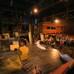 Artistët kanë ndezur dritat e celularëve ndërsa salla është në terr.Ata apelojnë qytetarët të mblidhen para teatrit për të kundërshtuar shembjen e godinës.