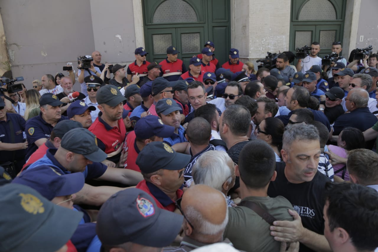 VIDEO/Artistët ia dalin të hyjnë brenda në godinë, Basha bashkë me ta: Krenar për forcën e qytetarëve