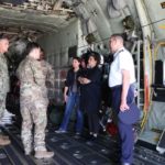 E shoqëruar nga e ngarkuara me punë në Ambasadën e SHBA në Tiranë, Leyla Moses-Ones, ministrja Xhaçka u ngjit në bordin e një prej avionëve të tipit “MC-130J Commando II”, ku u njoh me kapacitetet dhe aftësitë e këtij mjeti fluturues dhe ekuipazhit të tij.