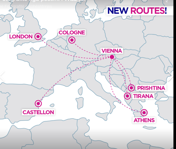 Operatori ajror me kosto të ulët Wizz Air, ka njoftuar se nga 19 dhjetori do të nisë fluturimet nga Tirana drejt Vjenës, krahas pesë destinacioneve të tjera të reja drejt kryeqytetit austriak, ndër të cilat nga Prishtina, Athina, Londra.