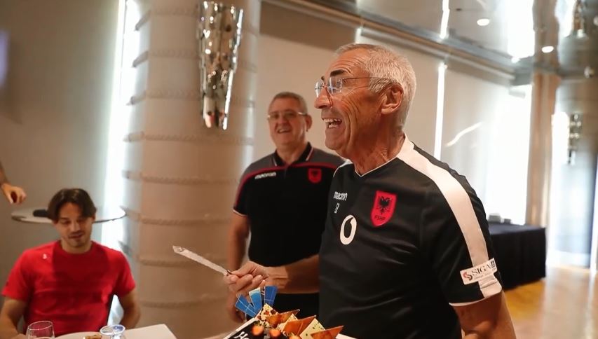 Trajneri i Kombëtares Shqiptare Edy Reja ka festuar 74-vjetorin e lindjes ditën e djeshme.Në hotelin ku ishte grumbulluar skuadra kuqezi, i gjithë ekipi i ka bërë një surprizë duke i sjellë një tortë me qirinj.