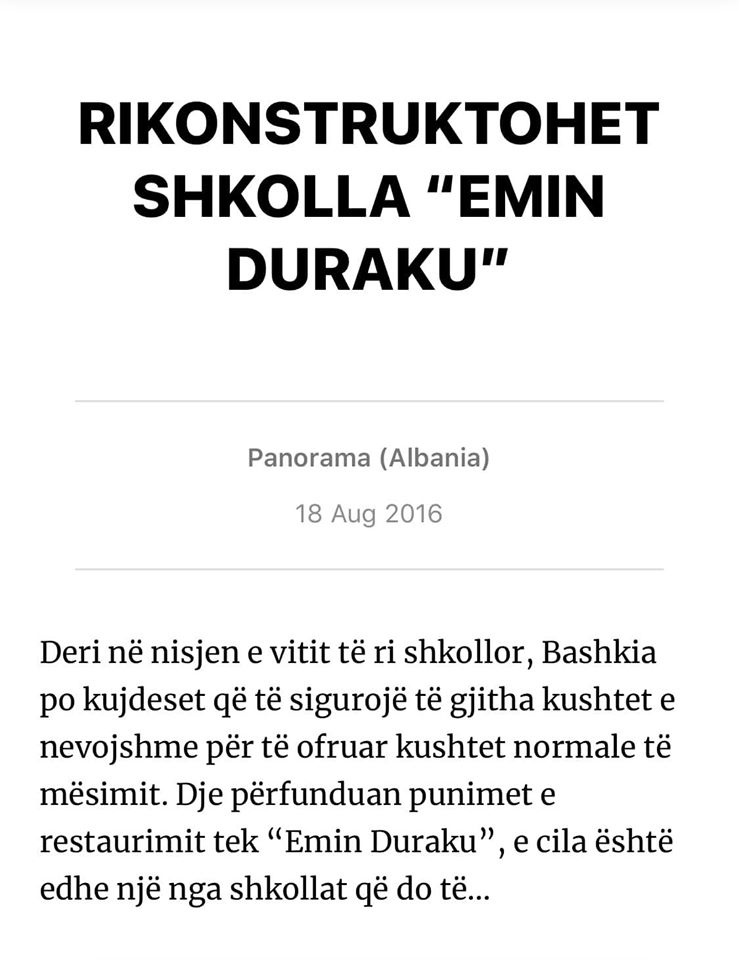 Konkretisht shkolla “Sami Frasheri” do te inagurohej nga Veliaj pas rikostruksionin ne korrik 2018, jo vetem kaq por Veliaj premtonte qe investime si te “Samiu”do beheshin kudo. Jemi me fat qe nuk i mban premtimet se do kishim te gjitha shkollat te demtuara nga termeti si “Samiu”.