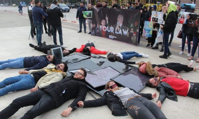 Ditën e sotme është zhvilluar nje proteste e dyte kundër ligjit “Anti-shpifje”. Kane qene disa të rinj, pjesë e Rezistencës Rinore, te cilet kane ardhur me nje ide shume te veçantë.