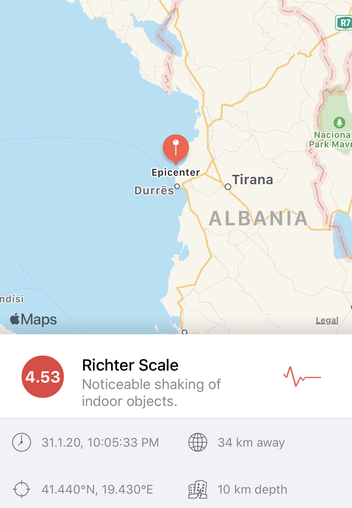 Nje termet i shkalles 4.5 Rihter goditi kete mbremje Tiranen dhe Durresin.