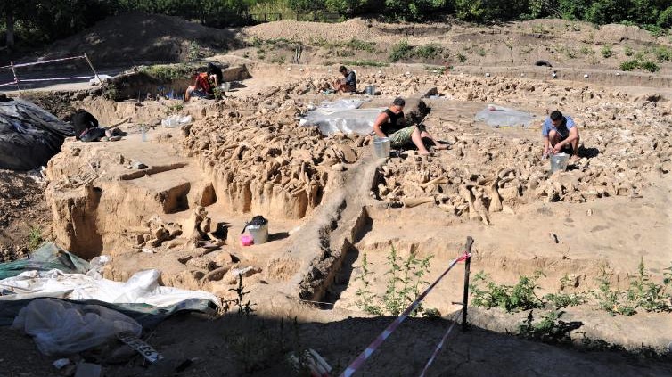 Gërmimet kanë zbuluar mbetjet e gjera të kësaj strukture antike të kockave nga mamuthët.