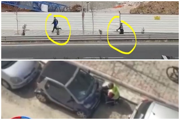 Ndërkohë video me poshte, është filmuar në një nga lagjet e Tiranës, ku një banor fshihet pas makinave kur kalon automjeti I policisë.