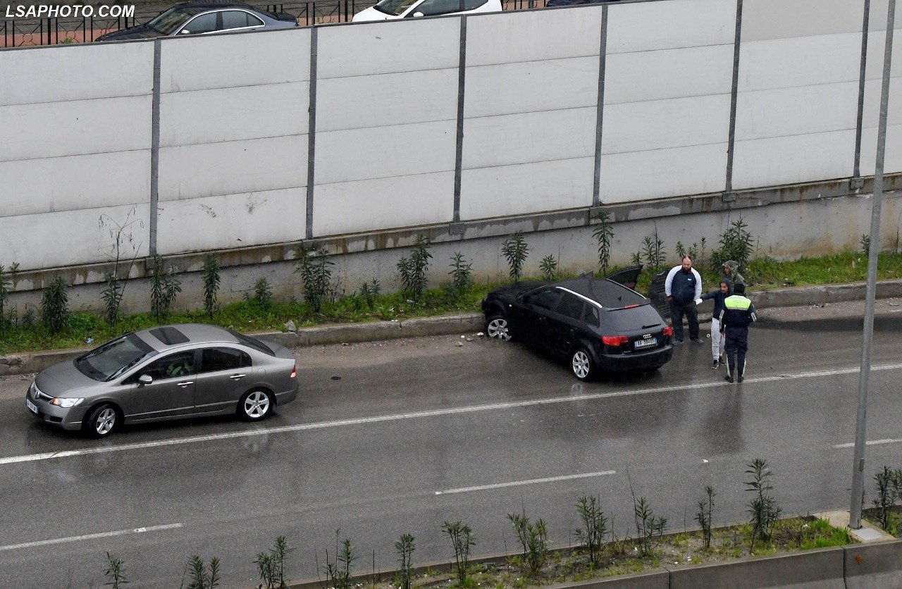 Siç shihet dhe nga pamjet, makina duket se ka humbur kotrollin dhe është përplasur me bordurën anësore të rrugës.