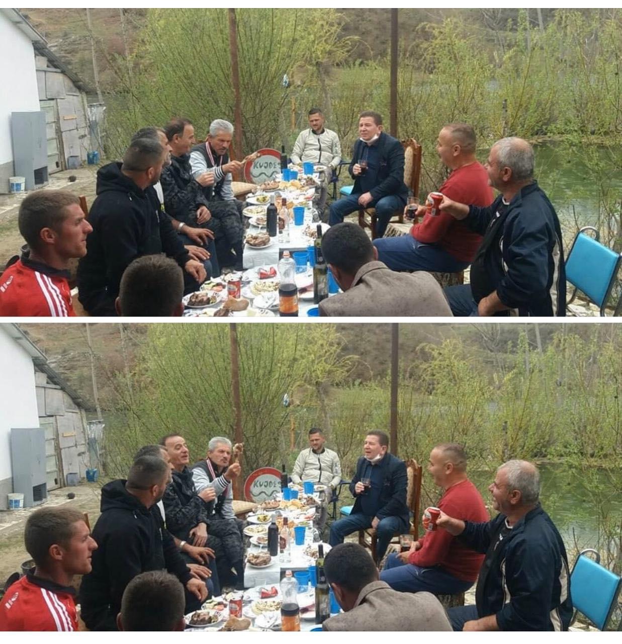 Shikojeni se sa i respekton masat kryetari i bashkise se Pogradecit Ilir Xhakolli. Në foto është ai sëbashku me disa funksionarë të pushtetit lokal në Njësinë Administrative Dardhas,duke mos respektuar asnje kufizim te distancimit social.