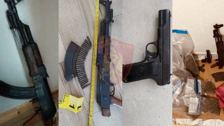 Gjithashtu, gjatë kontrollit të ushtruar në banesën e tij, në fshatin Babinë, Policia gjeti dhe sekuestroi edhe një tjetër armë zjarri kallashnikov me 28 fishekë, ndërsa në afërsi të banesës u gjet një sasi prej 2.9 kg lëndë e dyshuar cannabis sativa”, njofton policia./DRONI.al/