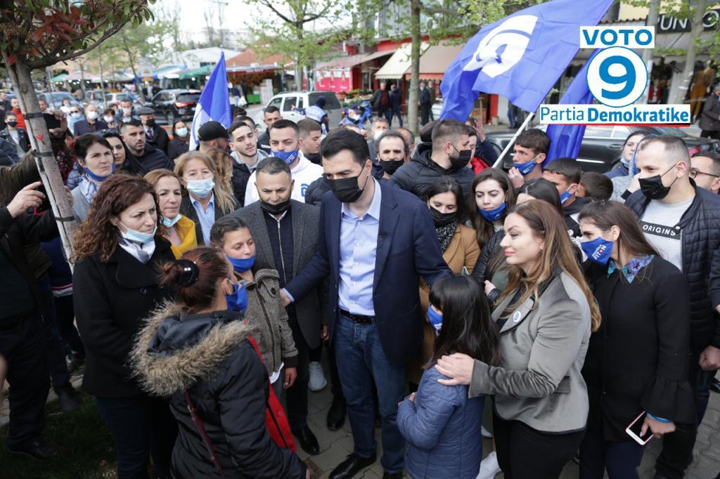 Lulzim Basha: Dua t’ju falënderoj për pritjen në zonën e Don Boskos, siç e shikoni, nuk ka mikrofon, më thonë që nuk ka drita më thonë. Kanë hequr energjinë. Ata mund të heqin energjinë, siç e kanë lënë në errësirë 8 vite Shqipërinë. Por për 10 ditë energjia për ndryshim do të ndez dritën e shpresës në zemrat e gjithë shqiptarëve. Zoti ju bekoftë ju! Zoti e bekoftë Shqipërinë! Më 25 prill numrin 9! Bashkë për ndryshim! Shqipëria fiton! a.b