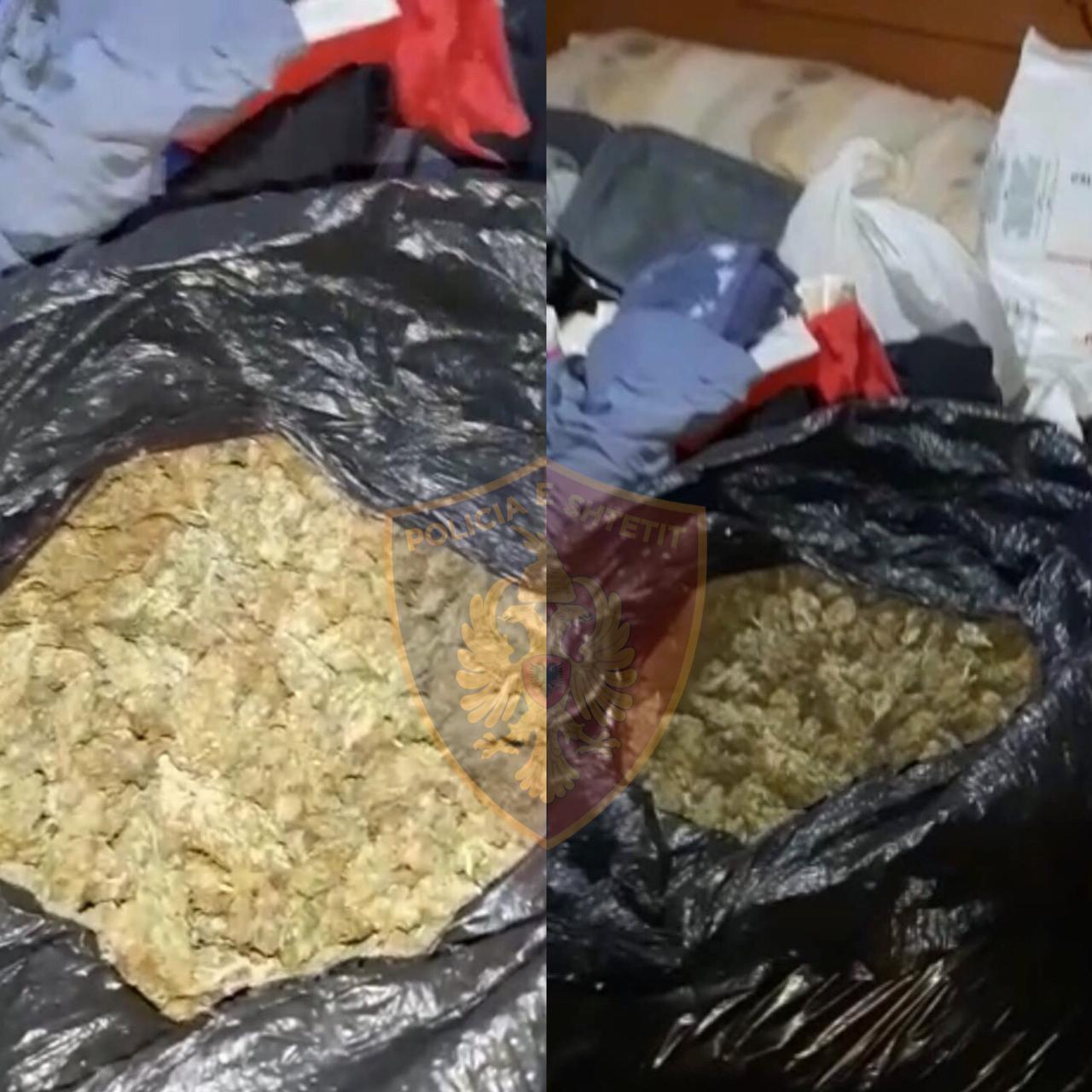 Në kuadër të këtij operacioni, nga kontrolli i banesës së shtetasve Xh. Ç. dhe Q. Ç., u gjetën dhe sekuestruan 3.2 kg kanabis dhe fidanë narkotikë të mbjellë në kuti felizoli.