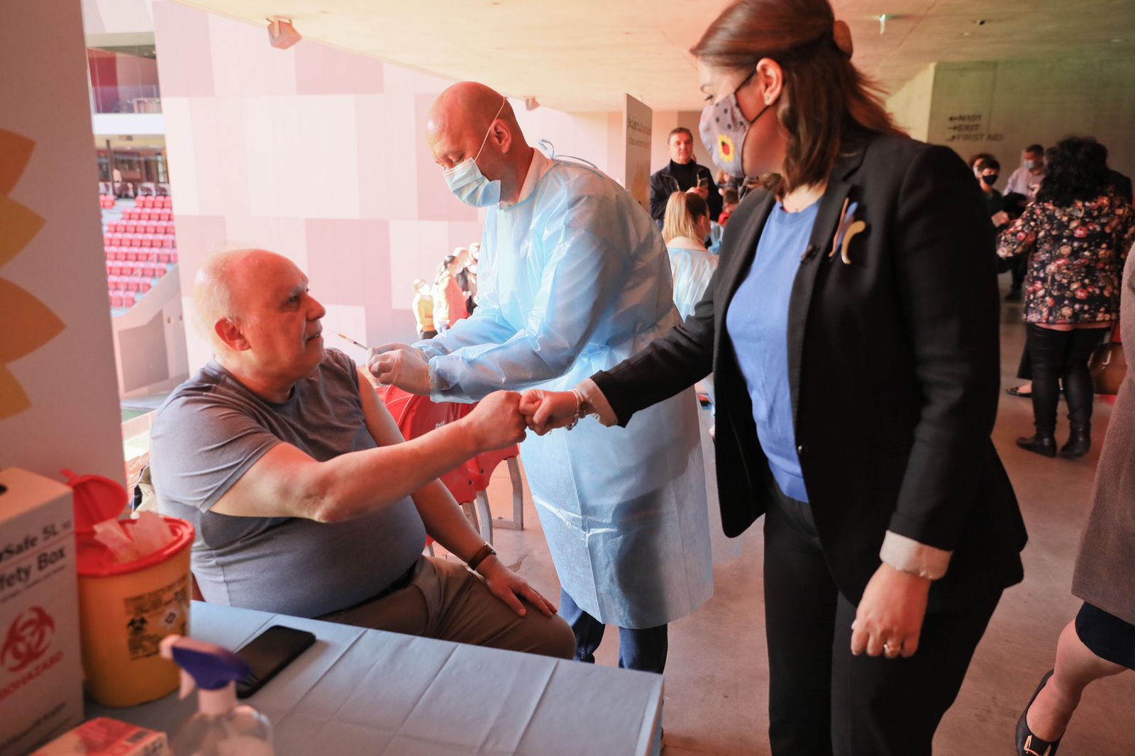 Tiranë, 2 Nëntor –. Ministrja e Shëndetësisë dhe Mbrojtjes Sociale, Ogerta Manastirliu ka ndjekur nga afër procesin e vaksinimit në “Air Albania” të mjekëve të parë që kanë nisur vaksinimin me dozën e tretë, apo dozën “booster”.