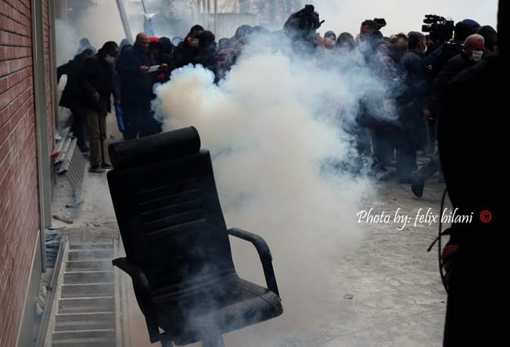 Më poshtë janë disa nga fotot që fotografi njohur Feliks Bilani shkrepi sot në protestën te selia e PD derisa gazi nga selia e Bashës dhe dhuna e polisë e bënë për spital.