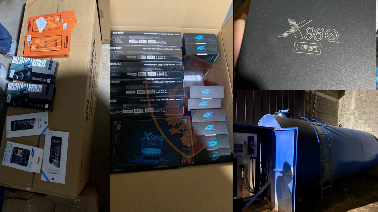 Gjithashtu gjatë kontrollit të ambienteve të subjektit janë konstatuar dhe sekuestruar 10 Aparate transmetimi sinjali televiziv(Android Tv), 13 Router interneti, kuti medikamentesh, artikuj të ndryshme kancelarie, pa dokumentacionin shoqërues, si dhe automjeti në të cilin ishin të instaluar dy serbatorë të mbushura me naftë gjithsej 145 litra.