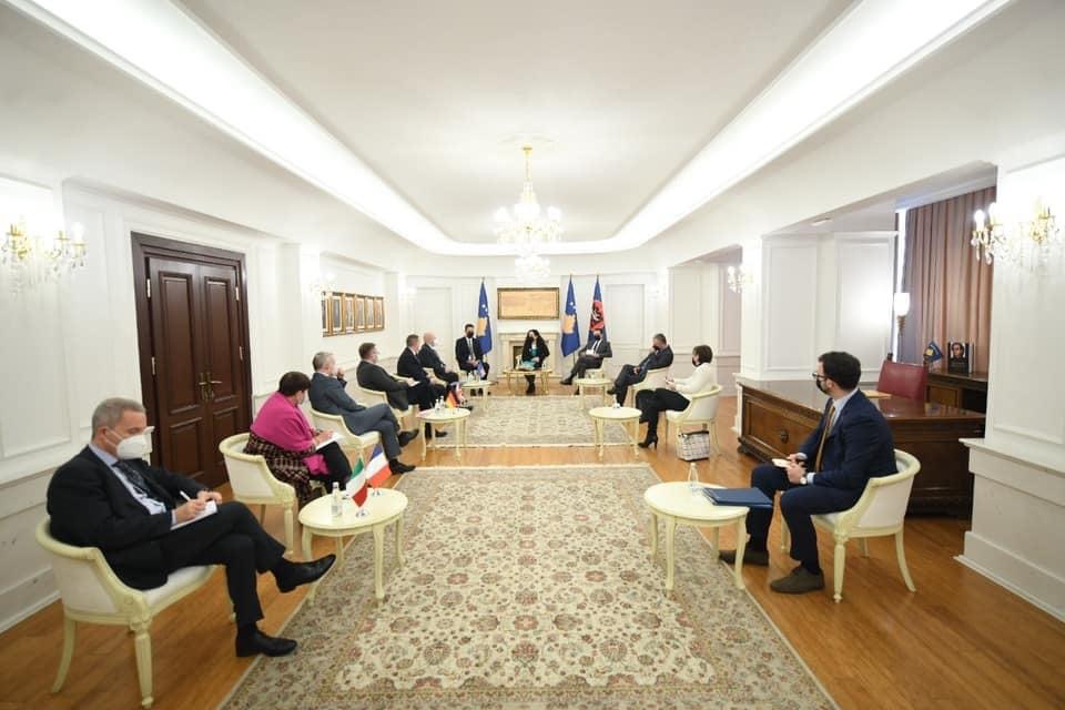Institucionet e Kosovës mbesin falënderuese ndaj shteteve të Quint-it dhe të gjitha shteteve të tjera demokratike që e kanë njohur pavarësinë e Kosovës dhe shprehin mirënjohjen që edhe sot në takim u rikonfirmua mbështetja e tyre ndaj integritetit territorial dhe sovranitetit të vendit tonë. Duke qenë kështu, institucionet e Kosovës i bëjnë thirrje të gjitha shteteve demokratike që ta mbështesin Kosovën në përpjekjet e saj për t`i ndalur veprimet e vazhdueshme të Serbisë që minojnë sovranitetin, integritetin territorial dhe shtetësinë e Kosovës. Për më tepër, kjo praktikë e Serbisë, që po e ndjekë modelin rus, ka mbështetjen e plotë të Federatës Ruse, duke dëshmuar kështu tendencat e tyre për destabilizim të shpejtë të rajonit tonë dhe zhbërjen e sukseseve që Kosova dhe rajoni i kanë arritur në partneritet me vendet mike demokratike. Mosmbajtja e referendumit serb në territorin sovran të Republikës së Kosovës është hap i duhur në betejën tonë të përbashkët kundër autokracive dhe avansim i praktikave demokratike, përkushtim të cilin Kosova e ka dhënë së fundi edhe në Samitin për Demokraci të organizuar nga Shtetet e Bashkuara të Amerikës.