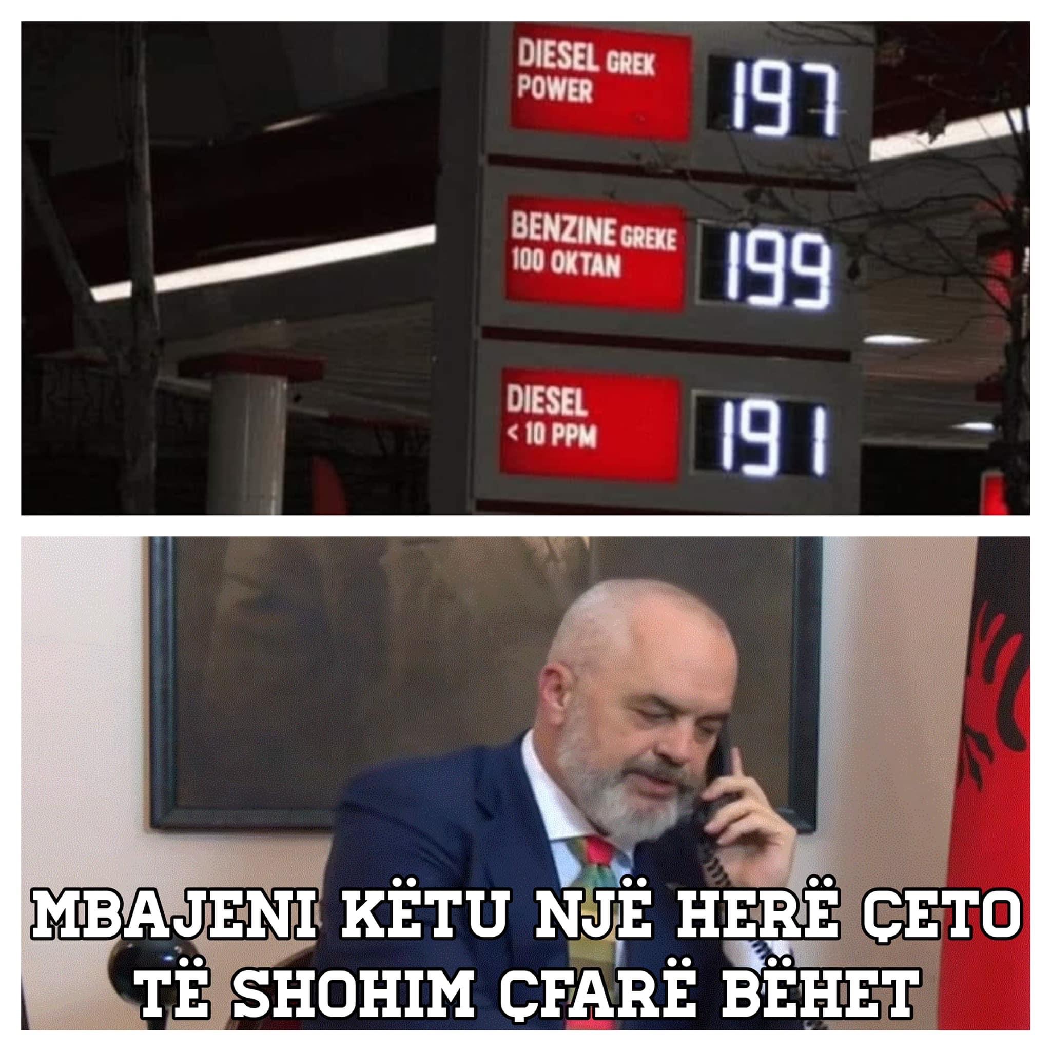 Çmimi i naftës nga e mërkuara që ishte deri në 2650 lekë litri tashmë ka zbritur në 1990 ose afërsisht sa ishte para se Rama të shpallte luftën, një kod i kryeministrit për oligarkët që të bëjnë namin me paratë e qytetarëve.