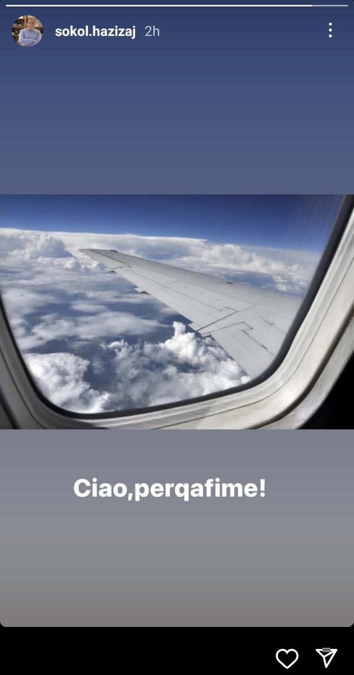 Ndërkohë avokati i tij Sokol Hazizaj ka postuar këtë mbrëmje në Storyn e tij në Instagram një foto nga avioni ku shkruan “Ciao përqafime”.