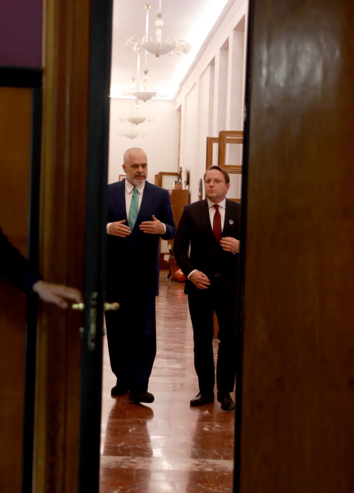Kryeministri Edi Rama: Përshëndetje të gjithëve! Kemi përsëri në Tiranë Komisionerin e BE-së për Zgjerimin dhe Fqinjësinë, zoti Varhelyi, me të cilin patëm një diskutim të gjerë dhe shumë të hapur si gjithmonë, mbi aktualitetin e procesit të integrimit, mbi marrëdhëniet rajonale, natyrisht edhe lidhur me situatën e luftës në Ukrainë, si dhe me pasojat e saj mbi ekonominë e vendeve tona dhe patjetër që folëm edhe për stacionin e ardhshëm, të afërt, mbledhjen e Këshillit Europianku do të diskutohet përsëri çështja e hapjes së rrugës ose jo për konferencën e parë ndërqeveritare mes Shqipërisë dhe Bashkimit Europian.