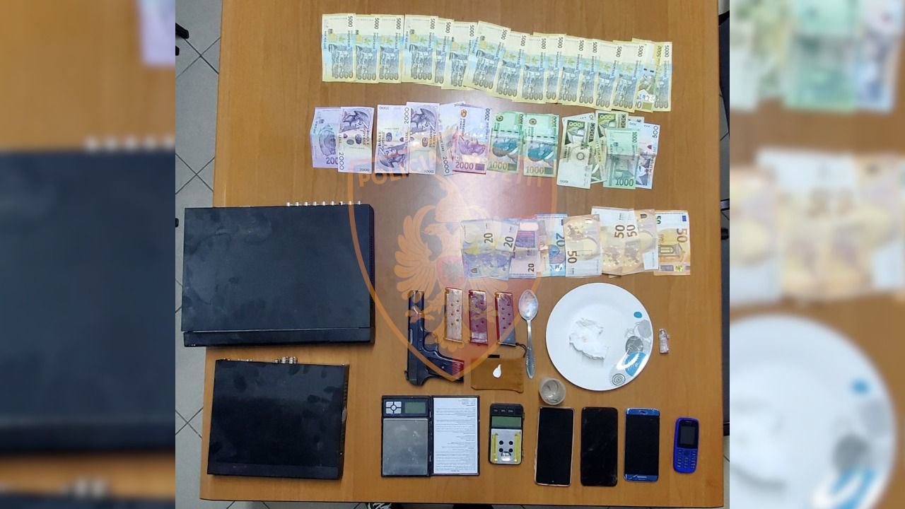 Sekuestrohen armë zjarri pistoletë, municion luftarak, lëndë e dyshuar narkotike kokainë e ndarë në doza, shuma parash të dyshuara të përfituara nga aktiviteti kriminal, dy aparatura DVR, dy peshore elektronike dhe katër aparate celulare.