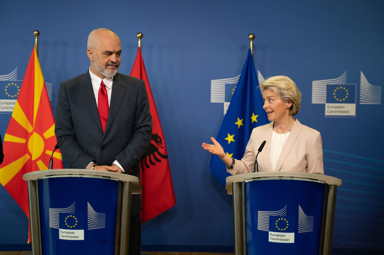Kryeministri Rama ndodhet në Bruksel dhe sapo ka mbyllur takimin me Presidenten e Komisionit Evropian Ursula von der Leyen, ndërsa po jep një konferencë shtypi.