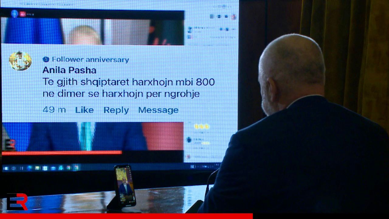 Kryeministri Edi Rama ka zhvilluar sot një bisedë online me ndjekësit e tij në rrjete sociale. Ai është përgjigjur në disa pyetje të filtruara. Dërkohë që është shmangur nga çështje themelore të vendit si korrupsioni, inceneratorët, blerja e energjisë me çmime jashtë tregut dhe grabitja e shqiptarëve nga kompani të mëdha përmes tarifave të fshehura dhe shërbime fiktive.