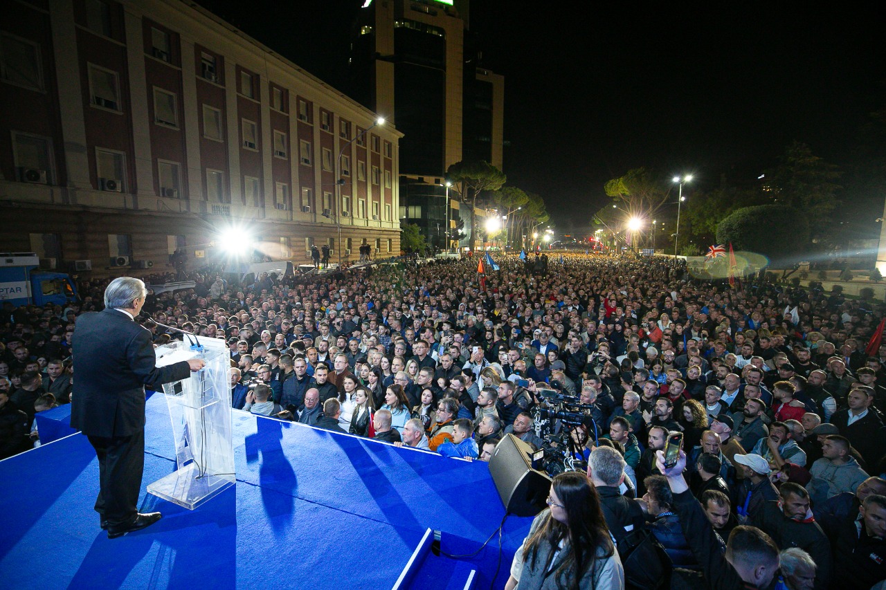 Në Shqipëri, opozita zhvilloi sot në mbrëmje protestën e paralajmëruar kundër qeverisë së kryeministrit Edi Rama. Mijëra mbështetës të saj u mblodhën për më shumë se dy orë para godinës së qeverisë në bulverdin qëndror të Tiranës, në një nga manifestimet më të mëdha të organizuara nga opozita vitet e fundit.