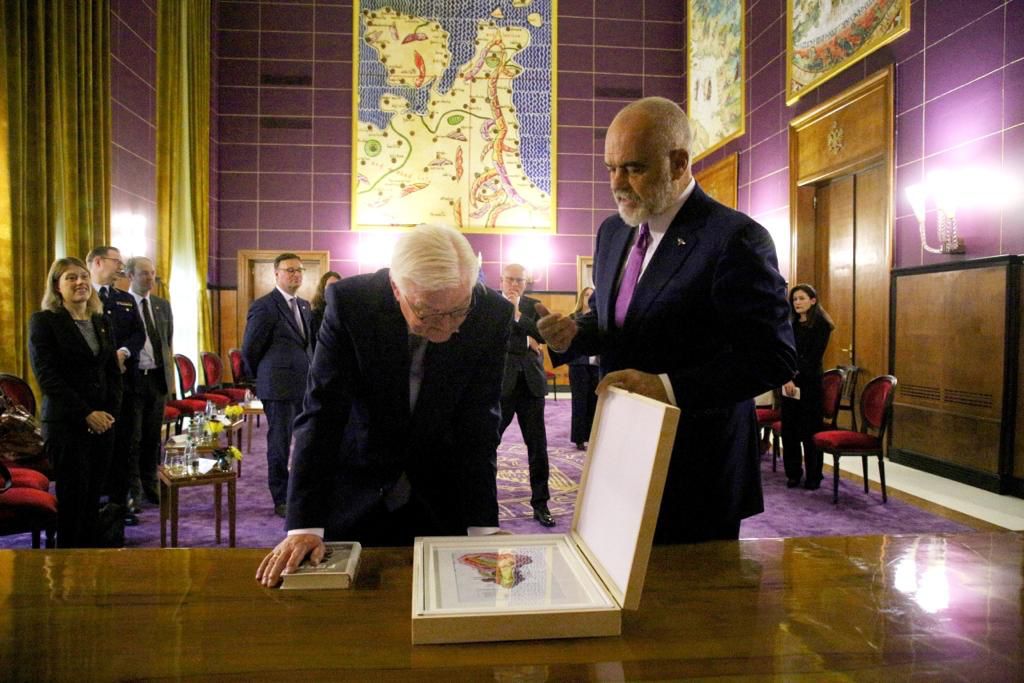 “Mbështetja e Gjermanisë në të gjitha frontet ka qenë thelbësore për ne. E mendojmë që është shumë mirë të kemi një ministër të jashtëm si President në Gjermani sepse është shumë e dobishme, duke njohur terrenin, duke njohur njerëzit, duke njohur dinamikën në terren për të gjitha vendet, sidomos në këtë rajon, ku siç e dini kemi dhe Procesin e Berlinit që po vazhdon, që në një farë mënyre është riorganizuar, është ripërtërirë, ku falë këtij procesi kanë ndodhur shumë gjëra të mira për rajonin”, u shpreh Kryeministri Rama gjatë takimit.