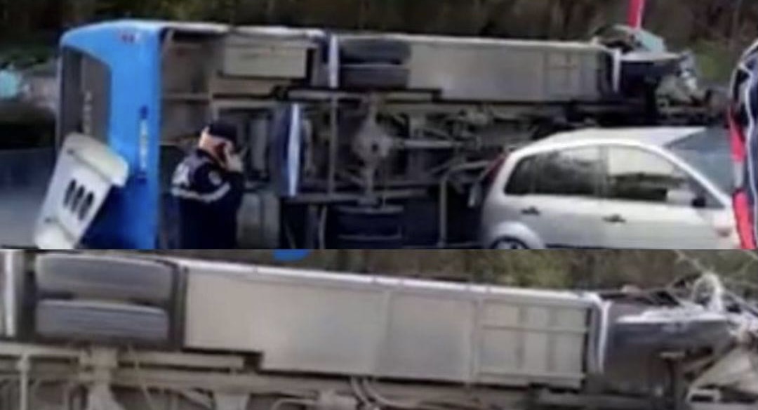 7 pasagjerë u plagosën dhe 2 makina të parkuara u shkatërruan nga përmbysja e një autobusi në rrugën e Elbasanit në Tiranë.