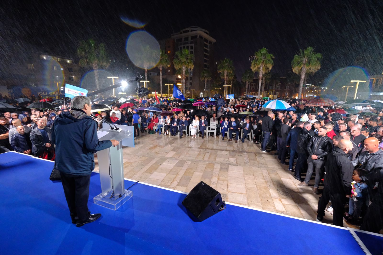 Përshëndetjet me të përzemërta, mirënjohjen më të thellë për këtë entuziazëm të jashtëzakonshëm. Ky miting, ky entuziazëm i njerëzve të lirë, i njerëzve me ideale për Durrësin dhe Shqipërinë, dëshmon se Durrësi ka vendosur ndryshimin, se Durrësi me 14 maj do të votojë njërin nga bijtë e vet më të shquar, njërin nga qytetarët më shembullorë, njërin nga politikanët që don më shumë qytetarët e këtij qyteti, banorët e këtij rrethi, Igli Carën.