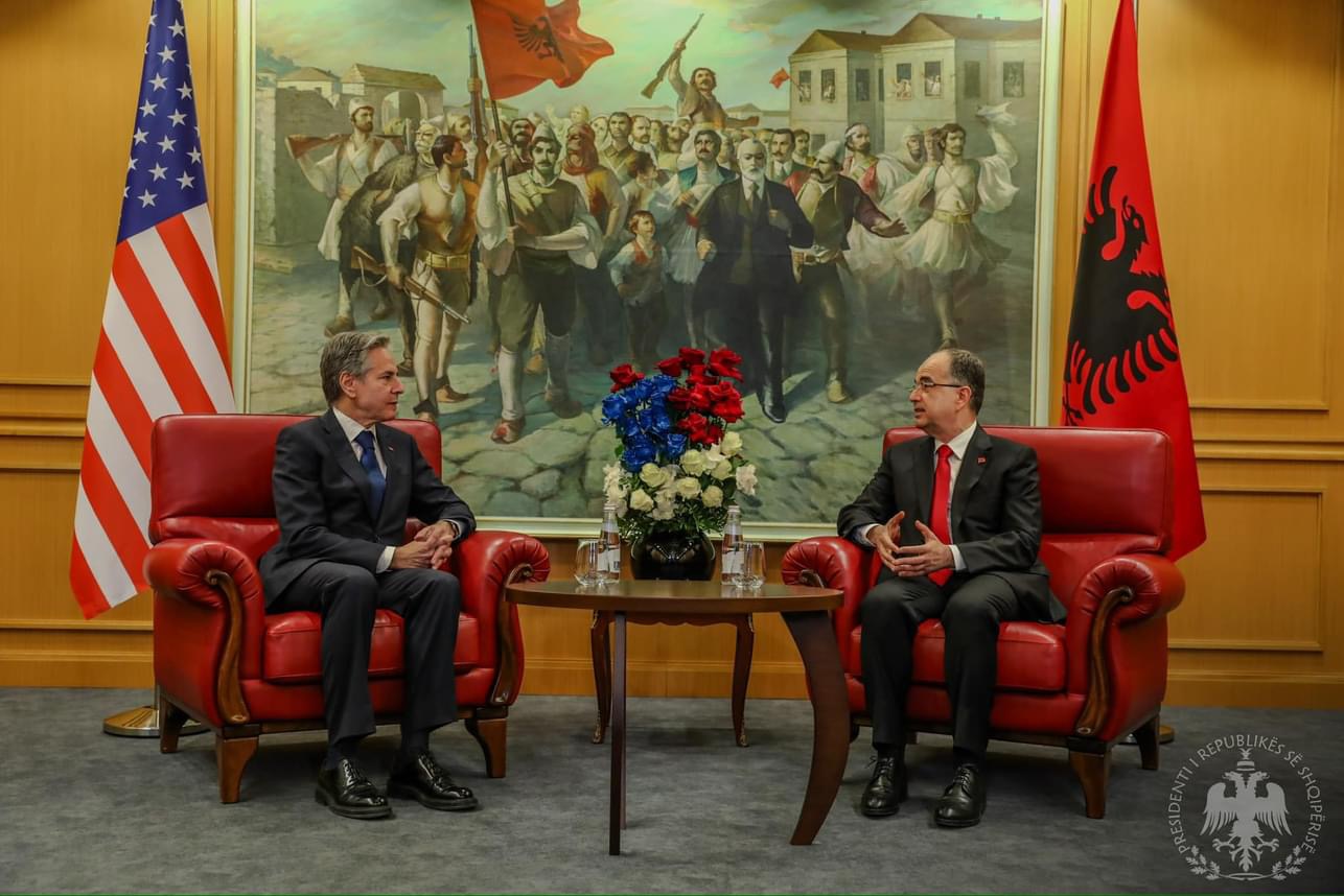 Kjo është një vizitë shumë e rëndësishme dhe dëshmon se partneriteti ynë strategjik është më i fortë se kurrë, e ka komentuar takimin e tij me Sekretarin e Shtetit, Blinken, Presidenti i vendit, Bajram Begaj.
