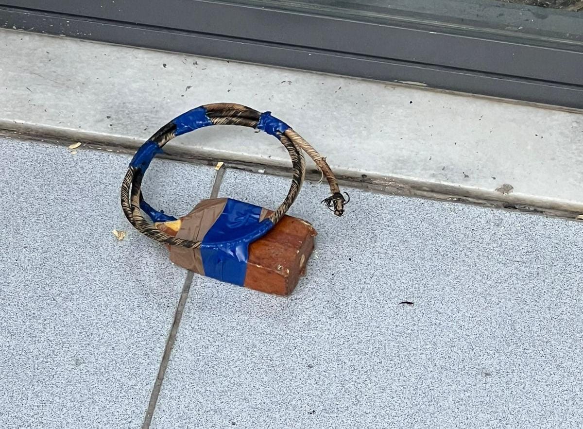 Lëndë plasëse në derën e një dyqani në Sarandë.
