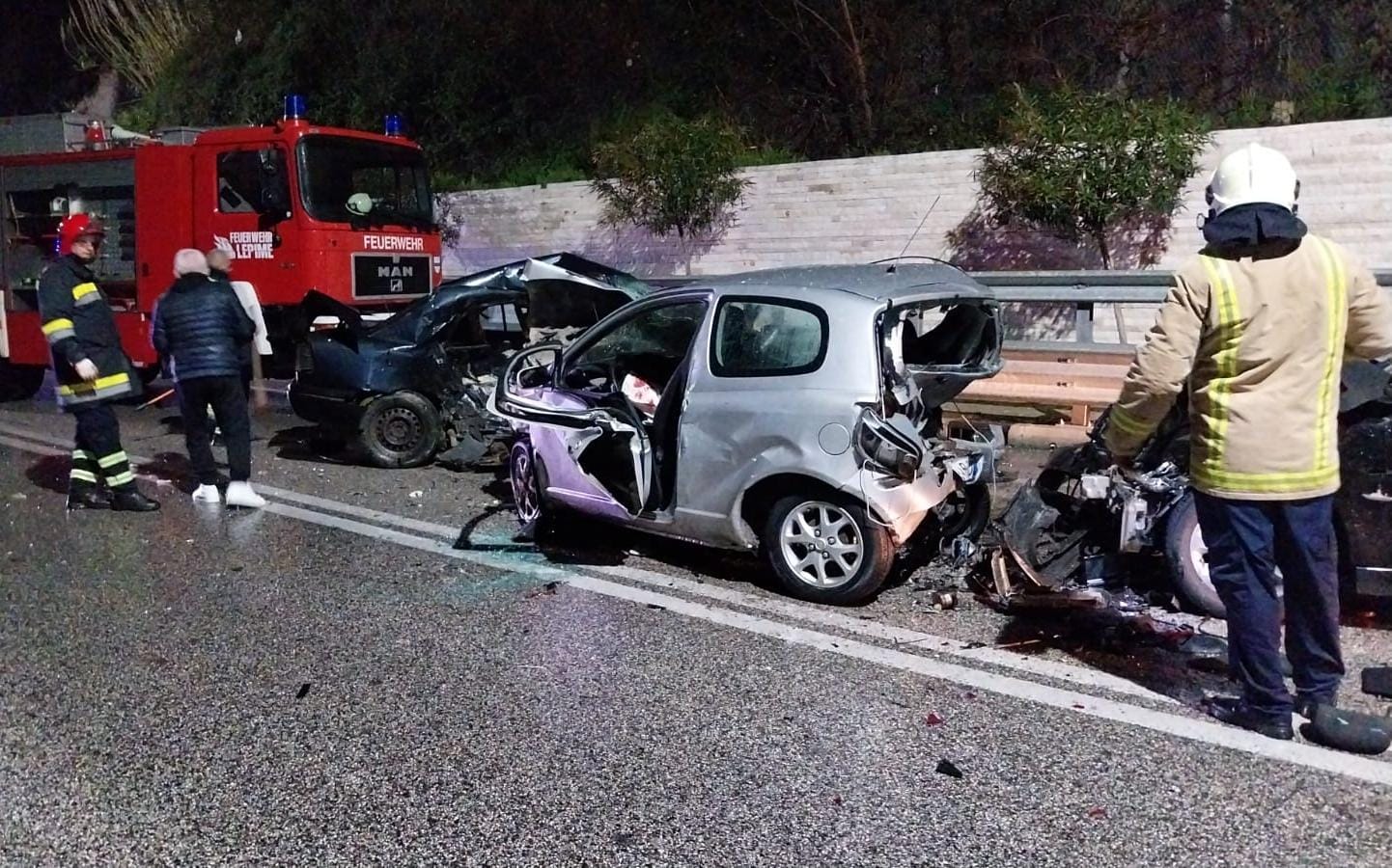 Sipas policisë makina tip Mercedes Benz po lëvizte me shpejtësi nën drejtimin e Riza Rrapa ka humbur kontrollin dhe si pasojë është përplasur me automjet Toyota dhe më këtë të fundit është përplasur një BMW që qarkullonin në drejtim të kundërt.