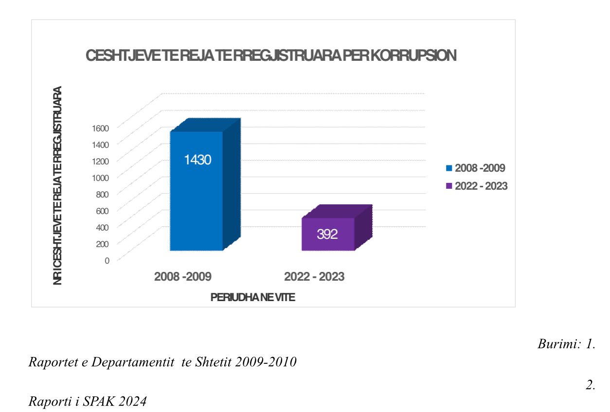 Kështu në vitet 2008-2009, Task Forca kundër korrupsionit regjistroi gjithsej në 2 vite, 1430 çështje, kundër 392 çështje që regjistroi totalisht në vitet 2022-2023.