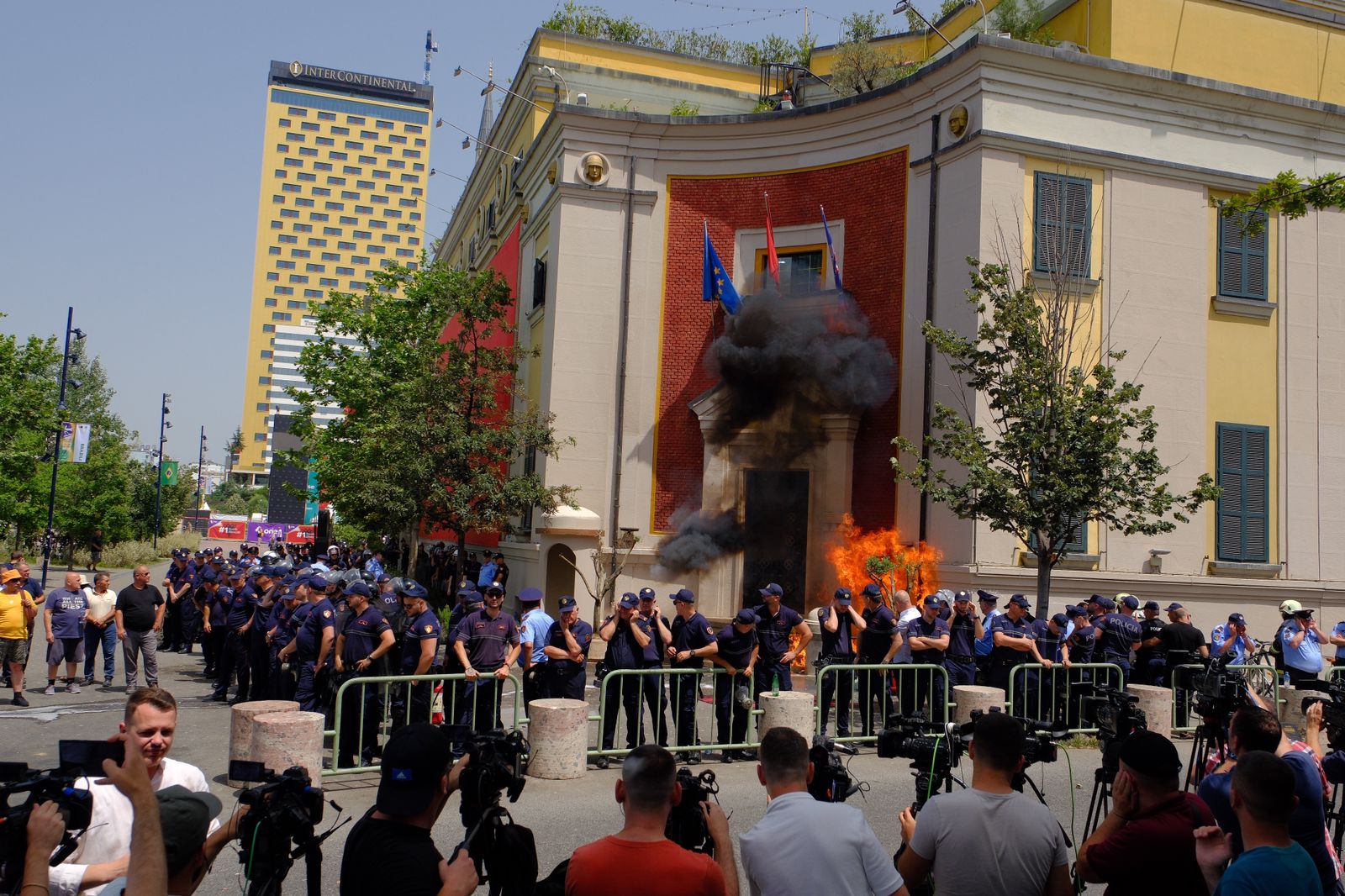 Disa pjesmarrës e kanë marrë fjalën ndërsa të tjerë hodhën molotov në drejtim të mureve të bashkisë.