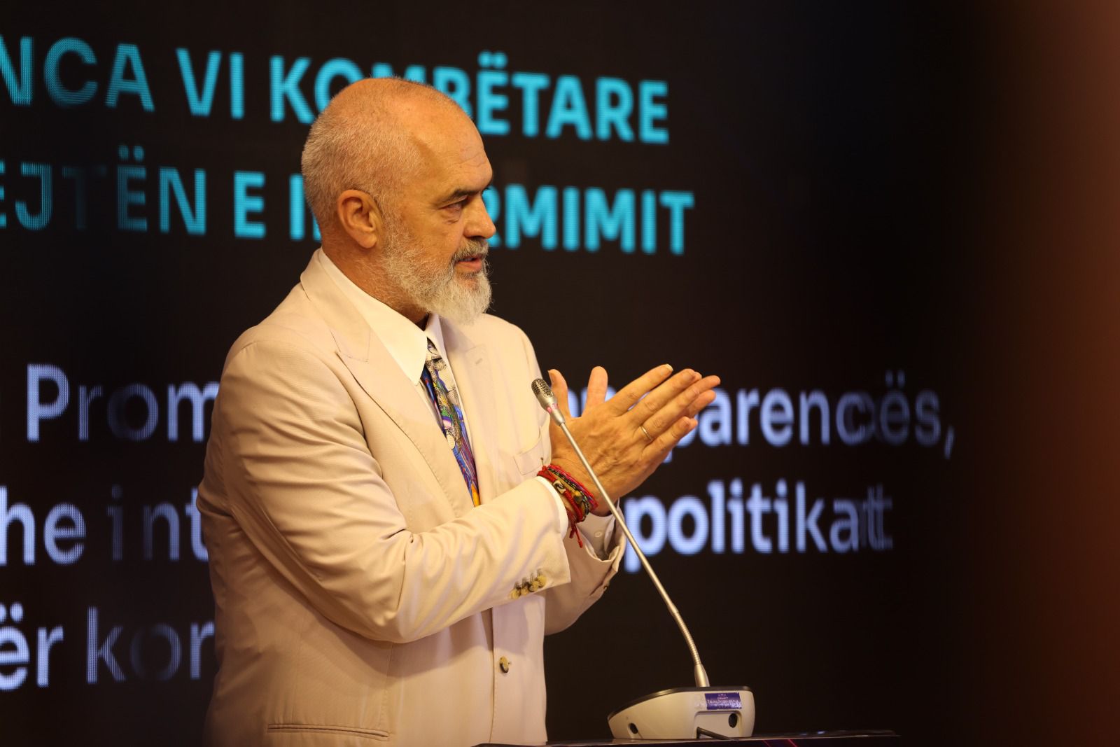 “Është koha të krijojmë një Bord Kombëtar ose komitet, por këtë fjalën komitet e kam pak problem se kam parë shumë komitete dhe kam marrë pjesë në ca syresh dhe më janë dukur se janë krijuar për të mos zgjidhur probleme. Nuk ka vetëdije për dhënien e informacionit në kohë reale dhe kjo gërryen besimin e qytetarëVe. Kjo hap shtretër të tërë lumenjsh për llumin e dezinformimit. Kjo shkel një të drejtë që është e publikut dhe çdo individi. Dhënia e informacionit s’duhet të diskutohet, duhet thjesht dhe vetëm të zbatohet”, tha Rama.