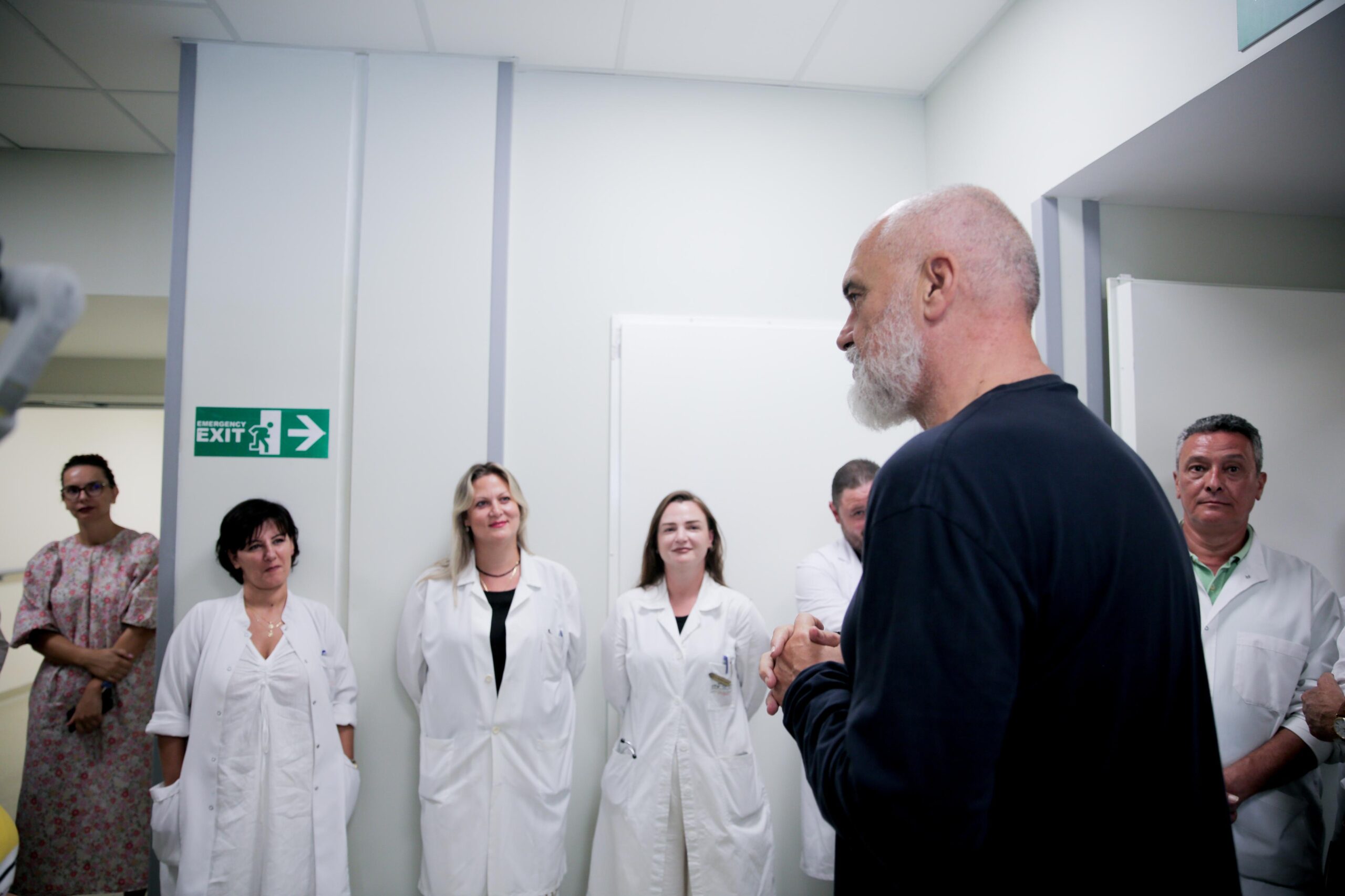 “Nëse do të na shpikni edhe një vaksinë për virusin e mospërfilljes ndaj pacientëve,  në raste të caktuara, do të ishte shumë mirë sepse unë që për shkak të punës e njoh sistemin nga brenda më shumë se sa një njeri që thjeshtë mund të vijë në spital ose mund të ketë ardhur në spital, – e di shumë mirë qëpjesa dërrmuese mjekëve janë super, edhe bëjnë shërbim, por mjaftojnë pak individë që janë “të pavaksinuar” me normat e edukatës dhe të etikës në punë, për të shkatërruar imazhin e të gjithëve dhe për të hedhur poshtë punën e përbashkët që po bëjmë dhe që nuk ka koment. Këtu e dimë shumë mirë si ka qenë, e shohim si bëhet përditë. Unë mund të flas edhe si pacient i spitalit që e provova vetë, madje mund të vij prapë për një tjetër ndërhyrje. Kam një hernie inguinale – që i kam mësuar edhe emrin – se kësaj diskales nuk i kërkoj mjek sepse punoj me forcat e mia, me stretch, me vetëpërmbajte përpara ushqimit që të mos rëndoj shumë mbi kolonën e lodhur nga basketbolli, po kësaj inguinales mesa duket nuk i bëj dot derman me forcat e mia, kështu që do vij prapë me shumë kënaqësi. Unë i them të gjithë atyre që ndodh që më shkruajnë mesazhe, i them “shkoni në spitalin publik, shkoni në spitalin qendror se aty jeni jashtë shteti”. Ata që e besojnë vijnë e thonë: ishte e paparë. Ata që s’e besojnë thonë: propaganda e rilindjes. Çfarë të them unë i shkreti?! Si piktor duke lexuar fytyrat, mund të them që më dukeni në formë. Uroj që të mos gabohem edhe uroj shumë që këto buzëqeshje të mos ia kurseni askujt që vjen këtu për shërbim. Një buzëqeshje e mjekut është më shumë sesa një recetë, një shpërfillje e mjekut heq 50% të efekteve të recetës, apo jo?” – u shpreh Kryeministri Rama. m.k