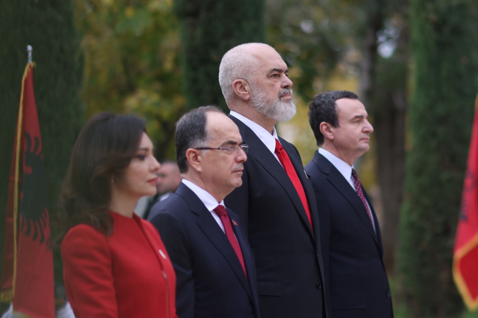 Personalitetet më të larta politike të Shqipërisë dhe Kosovës;Presidenti i Republikës Bajram Begaj, Kryetarja e Kuvendit Elisa Spiropali, Kryeministri i Kosovës Albin Kurti ishin pjesë e festimeve që nisën në sheshin e Flamurit me Himnin Kombëtardhe vijuan me homazhet e zhvilluara në nderim të përpjekjevedhe sakrificave të patriotëve shqiptarë për pavarësi.
