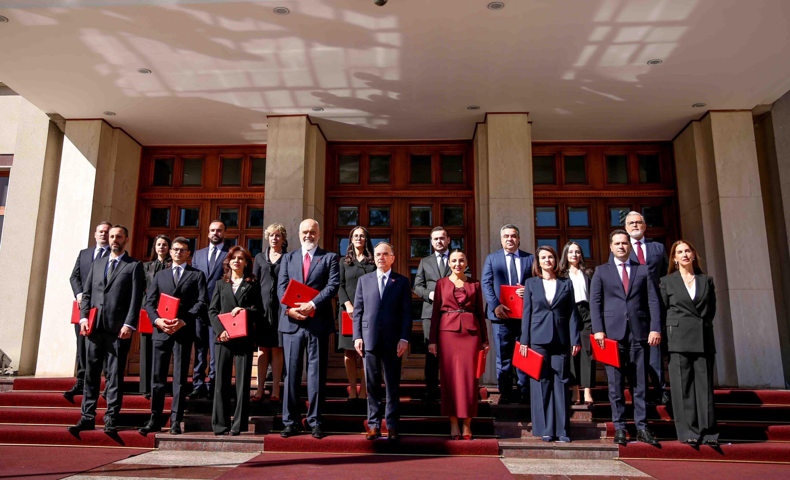 U zhvillua sot ceremonia e betimit të anëtarëve të rinj tëKëshillit të Ministrave para Presidentit të Republikës. Pas leximit të Dekretit të Presidentit për emërimin e Këshillit të Ministrave, ministrat e rinj u betuan me dorën mbi Kushtetutësipas formulës së betimit: